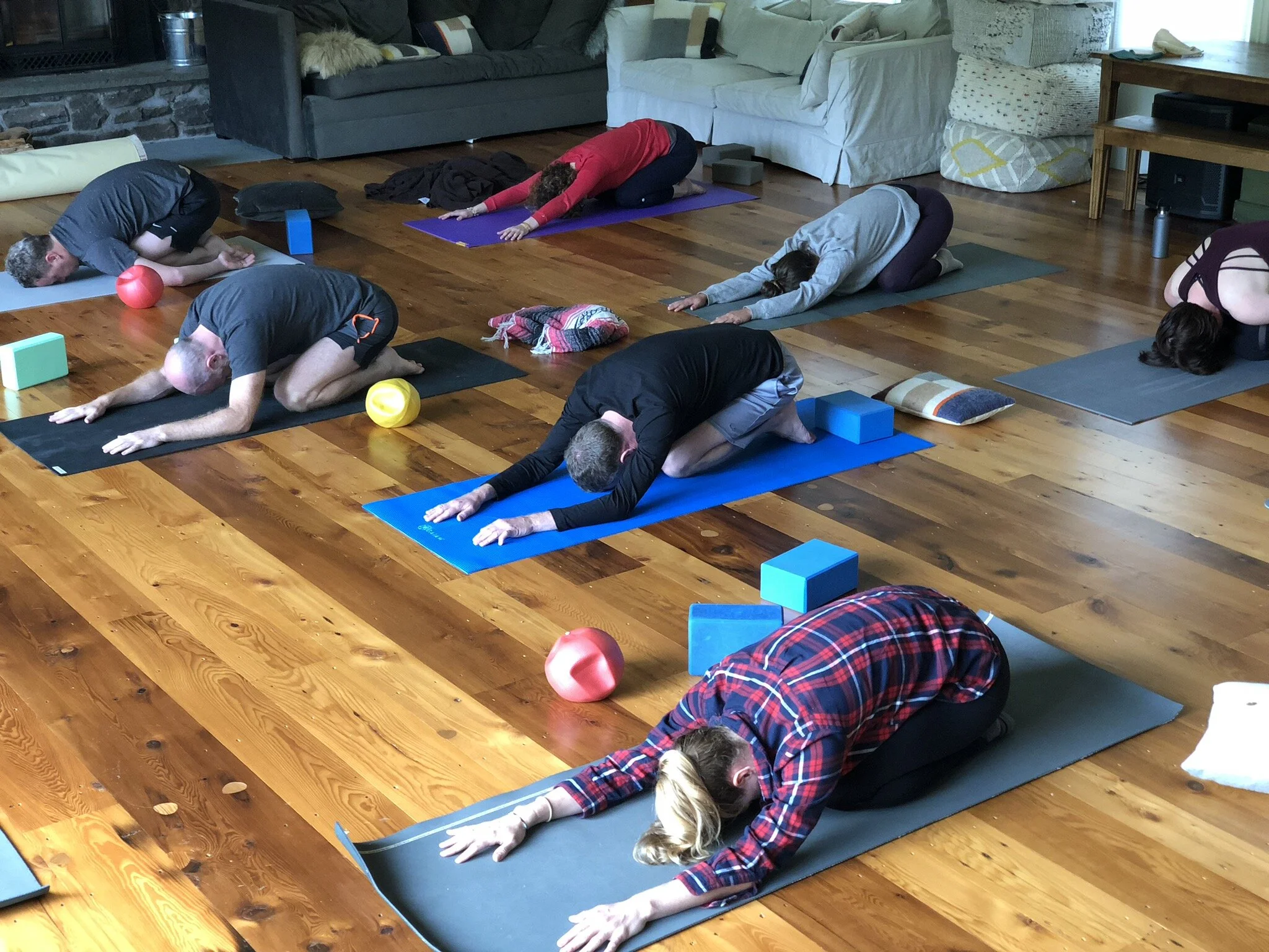 Just like the name suggests, restorative yoga is an opportunity to catch up on some much needed R&R. Restorative yoga focuses on poses that are supported by props, giving the body a break from muscular effort. Supporting the body in various poses with bolsters, blankets, eye pillows and belts, the body over time balances the parasympathetic nervous system- think rest and digest system rather than our often norm of fight or flight mode. The support of the props enable subtle openings that can reestablish physical and mental harmony. Poses are held between 5 and 20 minutes in order to attain the full benefits of the poses. Supported poses are supplemented with guided meditation, pranayama, and accompanied by quiet as well as good tunes. This practice can be great for those looking to de-stress, recovering from injury, or just needing a slower paced practice.